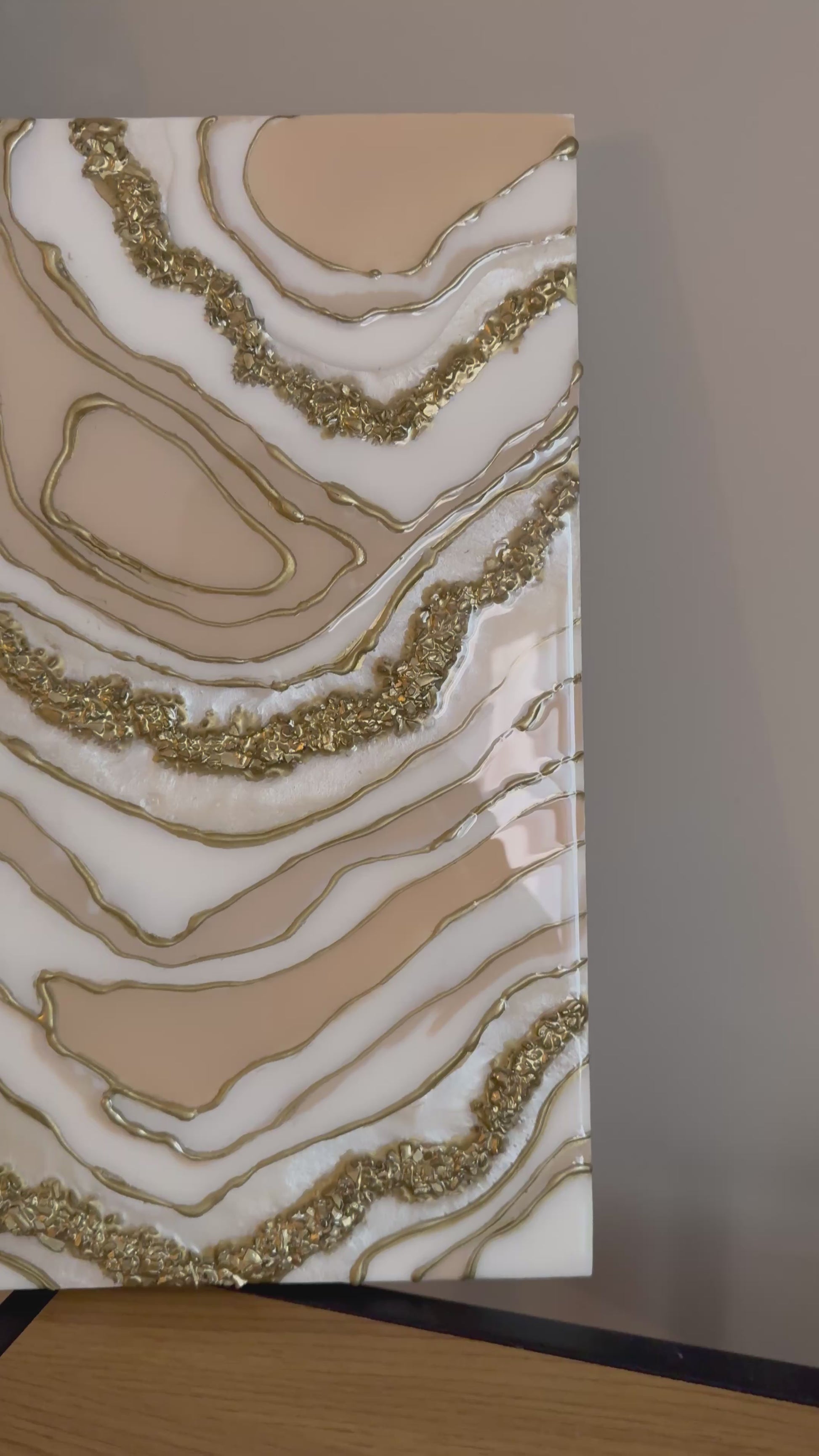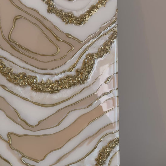 The Beige Wall Hanging is a handmade art piece that combines high-quality resin with crushed stones, providing a unique texture and depth. Its neutral color palette enhances versatility in decor, while the durable materials ensure longevity. This wall art can effectively contribute to a sophisticated aesthetic in various settings.